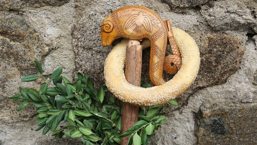 трапезата с обредните хлябове, върху които са изобразени символично всички